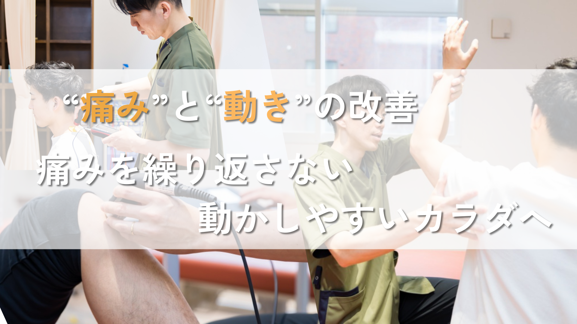 大学病院や整形外科クリニックで、多くの患者さんの治療をしてきました。その中で慢性痛が再発したり、怪我をした部分は治癒したのに別の部位が痛くなったりする方を多く見てきました。このような場合、原因は患部ではなく、身体の他の機能に問題があることが多いです。 そのため、当院では外傷や障害に対して、早期に痛みの緩和を目指し、再発しない身体づくり(身体の使い方や姿勢)を目指した治療を行っています。痛みの原因を取り除くために、患者さんにも積極的に治療に参加していただき、より早く症状の改善を目指します。