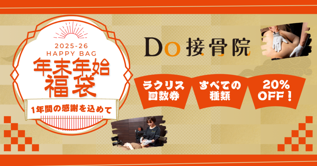 札幌市中央区・西18丁目にある**Do接骨院(整骨院)**では、日頃の感謝を込めて 年末年始限定「福袋キャンペーン」 を実施します。 ✔ ラクリス✔ ヘッド・フェイシャル✔ 部分集中ケア すべて 回数券が20%OFF になる、年に一度の特別企画です。 すべての回... -